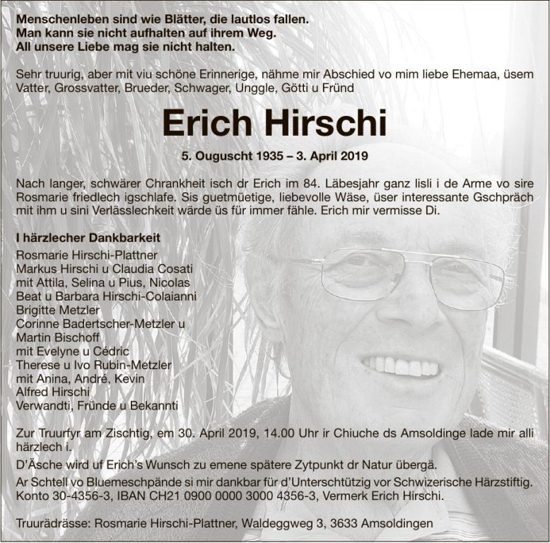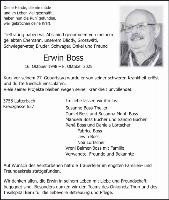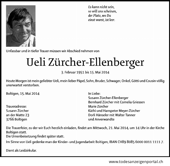 | Bilang Franz | EM VOSV | 42 | 3615 Heimenschwand | 29.12.2025 † |