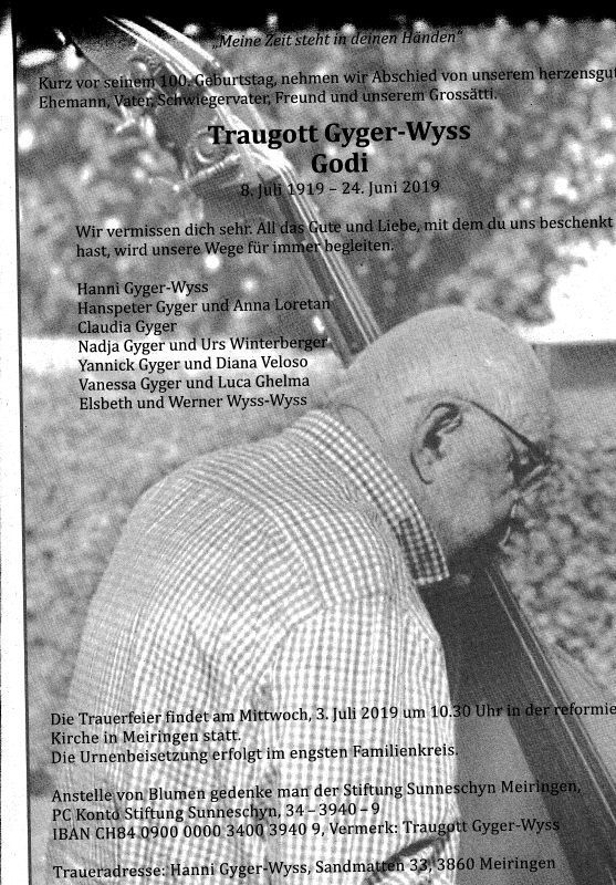 | Giger Traugott | EM VOSV | 19 | 3860 Meiringen | 2019 † |