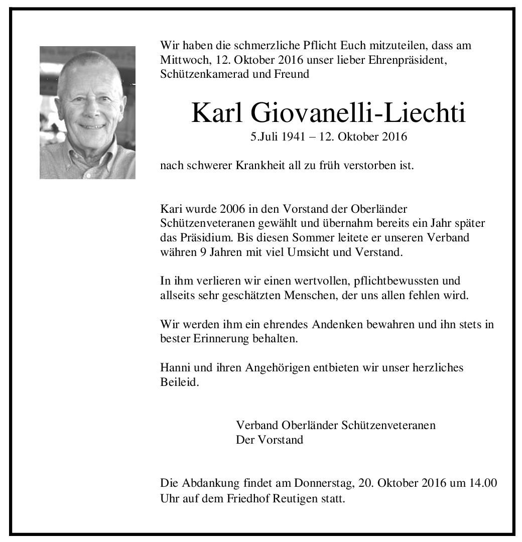 | Giovanelli Karl | EP VOSV | 41 | 3647 Reutigen | 2016 † |