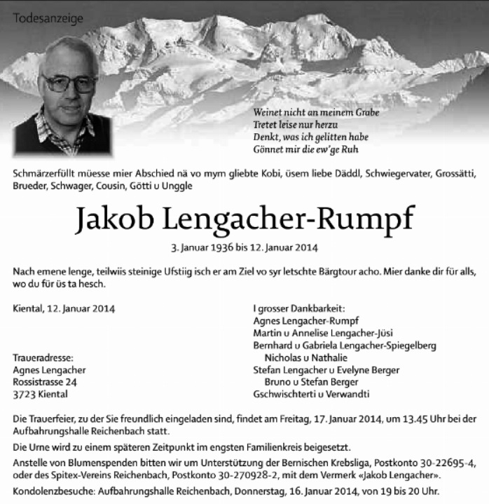 | Lengacher Jakob | EP VOSV | 36 | 3723 Kiental | 2014 † |