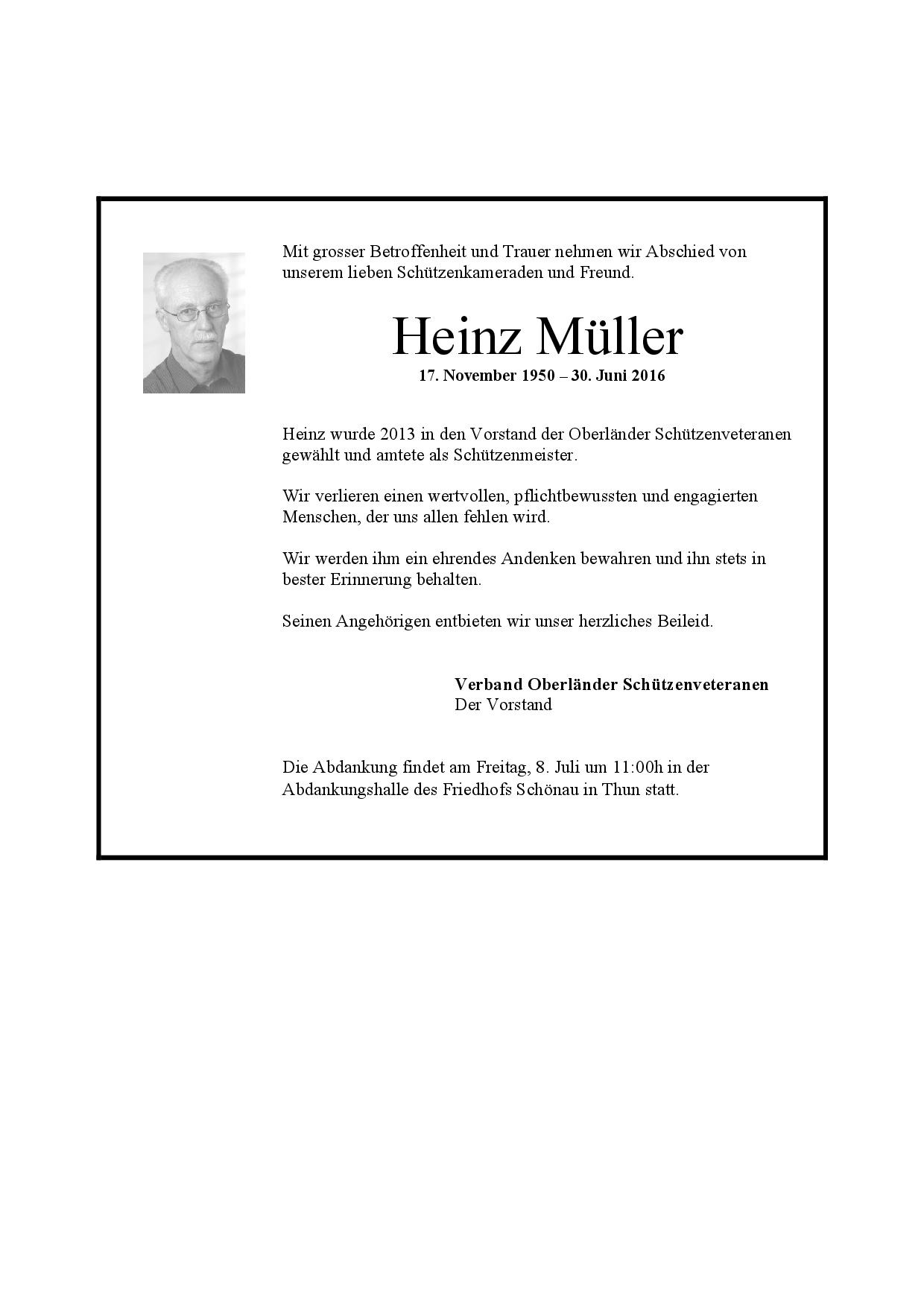 | Müller Heinz | VS VOSV | 50 | 3603 Thun | 2016 † |