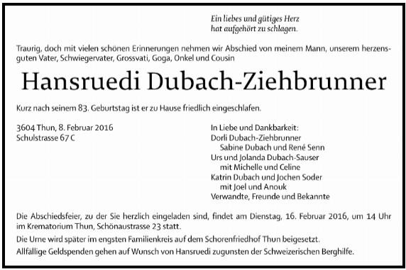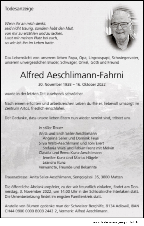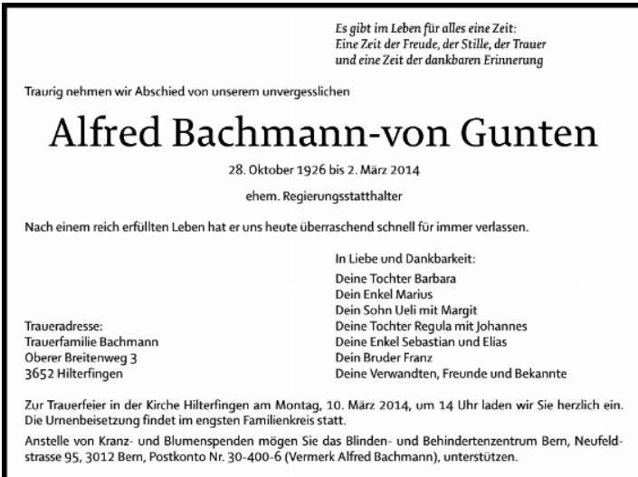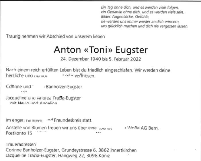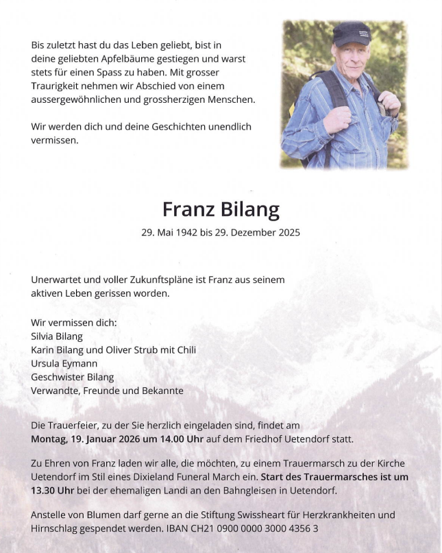 | Bilang Franz | EM VOSV | 42 | 3615 Heimenschwand | 29.12.2025 † |